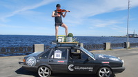 Pedrozavodsk sollte sie so aber noch nicht entlassen haben, kurz vor dem Abschied trafen weitere Freunde von Anna ein. Zuvor hatten sie ihr von einer Aufgabe der Rennleitung der BSC erzählt und so kam es das an einem sonnigen Nachmittag, am Ufer des Onegasees, ein russischer Geiger auf dem Dach eines schwarzen VW´s stand und den vorbeispazierenden Fußgängern ein Ständchen spielte.